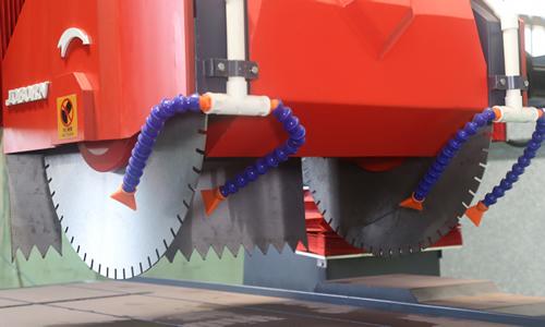 La velocidad de la hoja se puede ajustar con el conversor de frecuencia al moverse de izquierda a derecho de acuerdo con el material de la piedra. La máquina también es capaz de procesar las piedras arqueadas si se le agrega una mesa de trabajo rotativa.